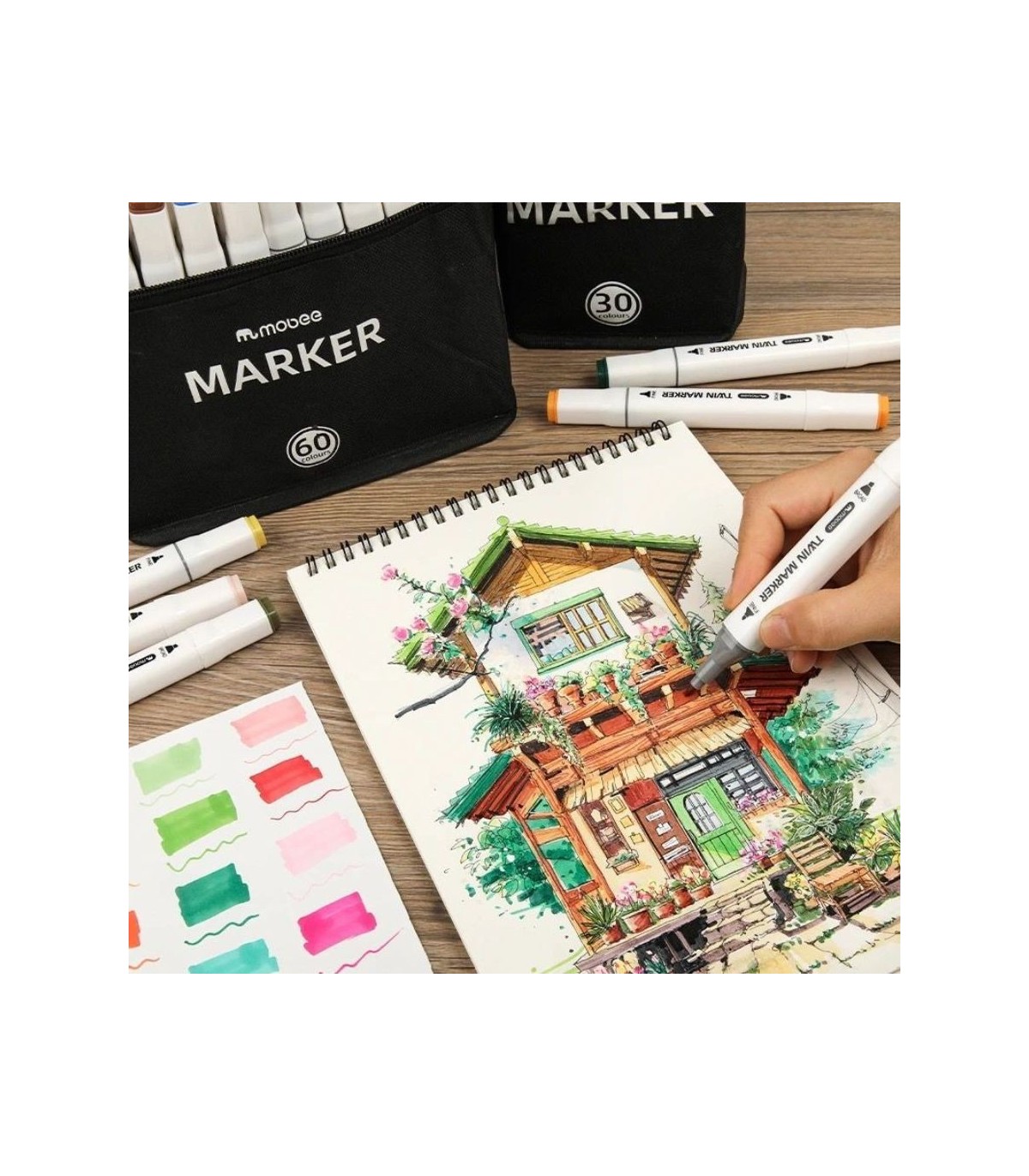 Marcador + pincel marker con estuche MOBEE 60pc